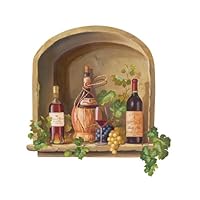 Handsomely detailed, this Wine Alcove wallpaper mural from Wallies adds the charm of a Mediterranean kitchen to the home. Rich colors and intricate touches combine in the set, which features a 25-by-26-1/4-inch arched alcove holding realistic wine bottles and a goblet surrounded by clusters of grapes and leaves. Pre-pasted for simple application, the vinyl-coated wallpaper pieces requires just a wash of water to activate their stickiness and then can adhere to almost any smooth surface. A great way to add a warm mood to a kitchen or eating nook, the mural is washable with a damp cloth, acid- and lignin-free, and strippable when it comes time to re-decorate. Several other themes are also available.