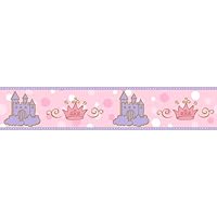 Complete your little princess's bedroom with this Disney Princess wallpaper border. This pink and purple border features castles and crowns, making it the perfect addition to any princess-themed room.