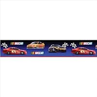 Feel the need for speed with this Officially Licensed Nascar Peel and Stick border.Designed for room decorating with brightly colored cars and complete with official Nascar logos, this self-adhesive border will coordinate nicely with all Nascar bedding available in the marketplace.Check out the coordinated set of Nascar Wall Decals for full effect! Border Specs 5" H x 5 yards Wall Decals and Size 20" repeat Approx. Size 5" H x 5 yards - US Sales Only