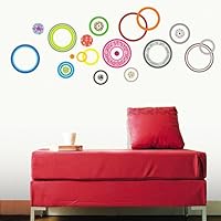 (More customer reviews)Please read before you apply: here's a tip I learned half way through applying this product!! I wanted it to look like this picture; well it doesn't come that way. All of those colors you see are single circles that lift off the paper and you can't get two off at the same time. I tried to line some of the circles up that were right next to each other back up on the wall and they didn't go back together right. TIP: take a pencil and make a small line on each circle that lines up the line just below the one you just marked. (Marking each cirlce in the same spot, so when pulled off you can re-align the pencil marks back up) When you pull the first circle off and you want to put the other circle on the inside or outside line up the pencil marks and it will go right together. You have to do this if you want to create the look on this page. Hope this helps!